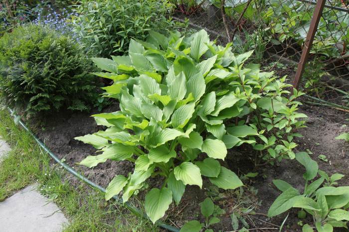 W moim ogrodzie pojawiła się jakieś 8 lat temu, jako jedna z pierwszych host. Rośnie na stanowisku ze słońcem do południa (wiosną, nim się rozrosną okoliczne rośliny, ma więcej słońca).