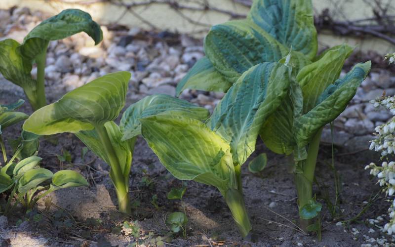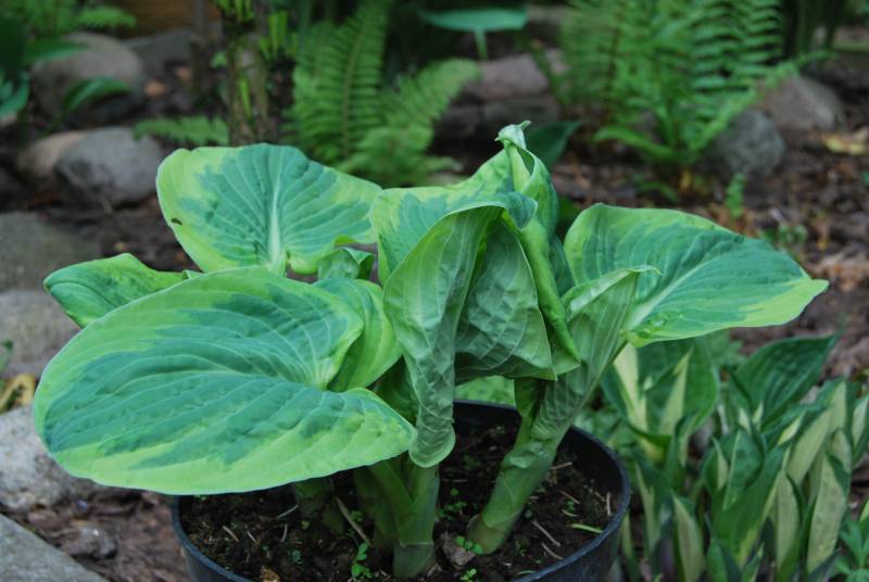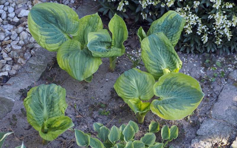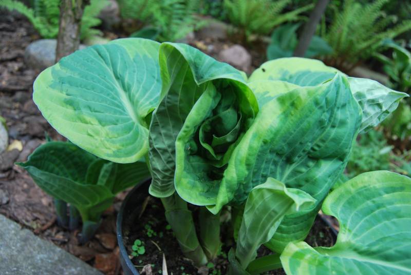 - bardzo widowiskowa, szczególnie wiosna,kiedy rozwija liście...żadna inna hosta nie jest tak pomarszczona i nie sprawia wrażenia 'wymiętoszonej',jak Snow Cap