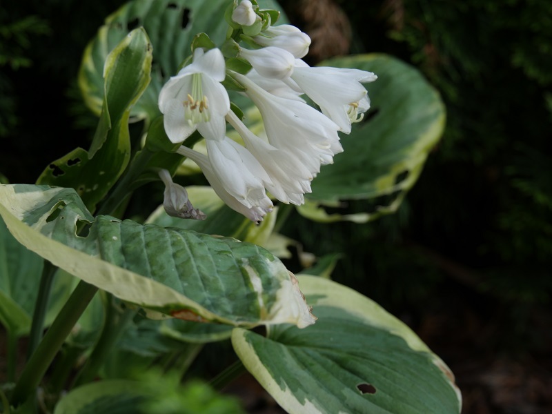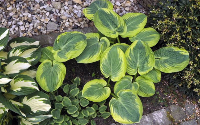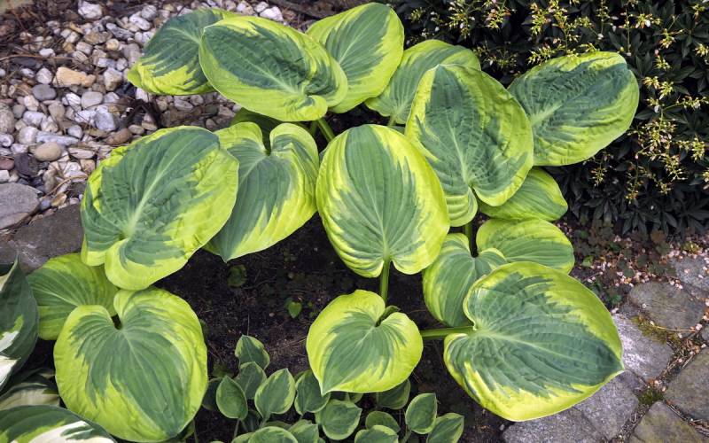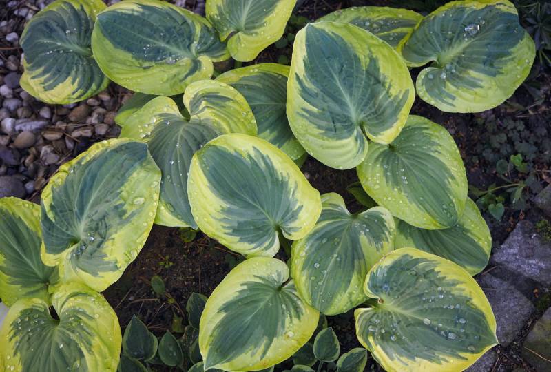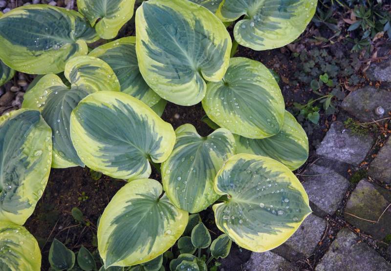 Liście: grube, burchlaste ( szczególnie wioną wspaniale pomarszczone); zielononiebieskie centrum z kremowo-białym nieregularnym marginesem