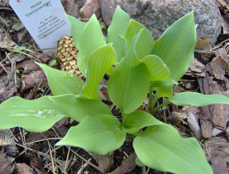 Rozmiar: (S)M wysokość 35-45cm Liście: małe, gęsto ułożone, lekko falujące i skręcone ; niebieskawozielone wiosna, w sezonie szarzeją ( proces zachodzi wolniej na stanowiskach cienistych) Kwiaty: lawendowe Zalecane stanowisko: od półcienia