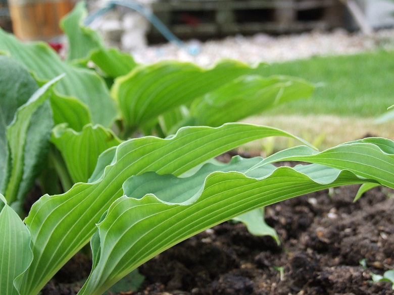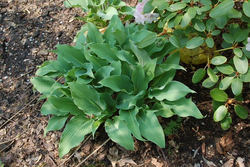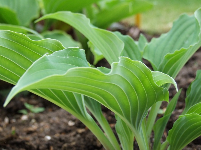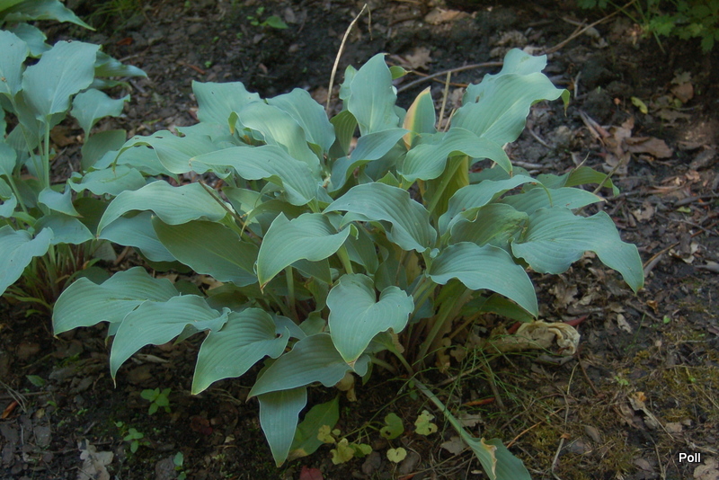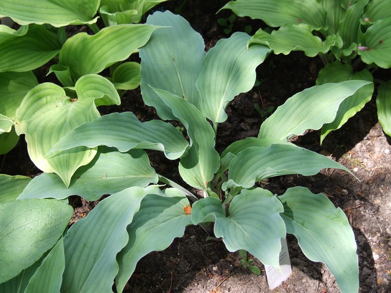 Liście: kolor przypudrowany niebieski w sezonie zmieniający się na zielono-niebieski, z falowanym marginesem; dobrej substancji