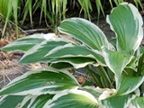 Rozmiar ML wysokość 40-45cm Liście:podłużne, miękko układające się ,niektóre wzniesione w górę ; błyszczące ; ciemnozielone z białym , szerokim i mocno kontrastowym marginesem ,który cienkimi strużkami różnych odcieni zieleni , spływa wzdłuż nerwów a u starszych egzemplarzy lekko faluje Kwiaty: lawendowe (VII/VIII) Zalecane stanowisko: od półcienia