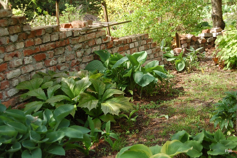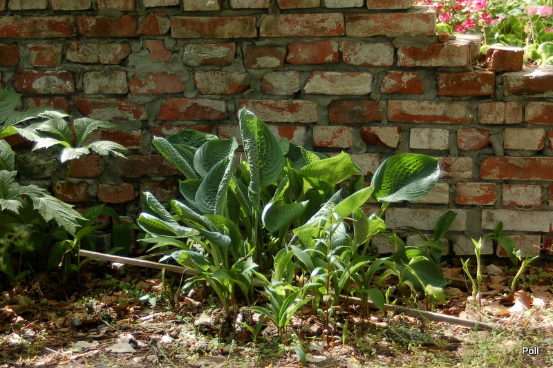 Aqua Velva dopiero rozwija liście na cienistym stanowisku pod murem