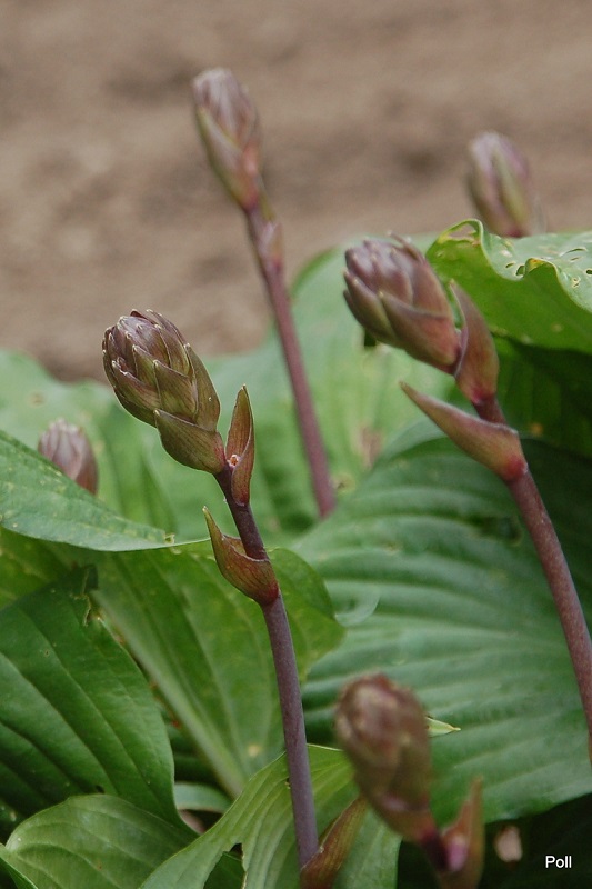Phantom, to hosta co najmniej 5-letnia. pamiętam, że kupiłam ją w Belgii, od pewnego szkółkarza i hodowcy kaczek w jednej osobie 2smiech. Sadzoneczka przyszła marniutka, ale po 2 latach nabrała nieco ciałka. Dziś ma około 15 kłów. Na zdjęciu Halszki widać, jakie są fioletowe, gdy wychodzą z ziemi. Później ten kolor zostaje w nasadzie łodyg i pięknie współgra z kolorem liści.