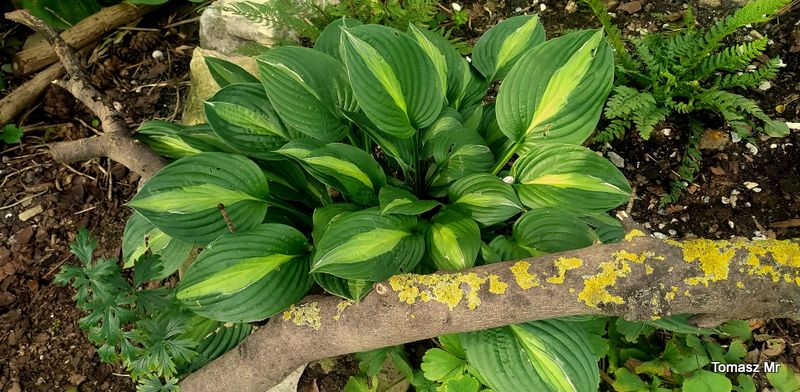 Rozmiar ML (50-60 cm wys.) Liście: podłużne, dobrej substancji; lekko falujący, szeroki niebieskozielony margines oddzielony jest od jaśniejszego, żółtozielonego centrum cienką biała linią Kwiaty: lawendowe Zalecane stanowisko: półcień