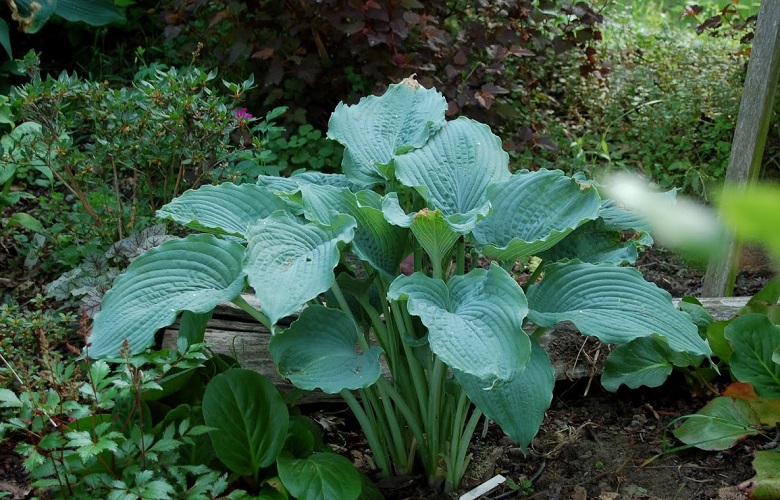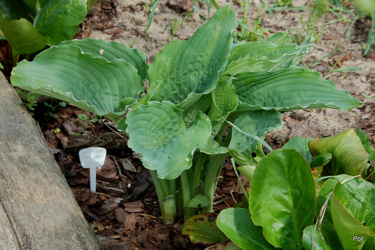Liście: duże, dobrej substancji o sercowatym kształcie; niebieskozielone z mocno pofalowanym brzegiem i dobrze widocznym unerwieniem; back liścia przypudrowany, mocno wypukłe nerwy