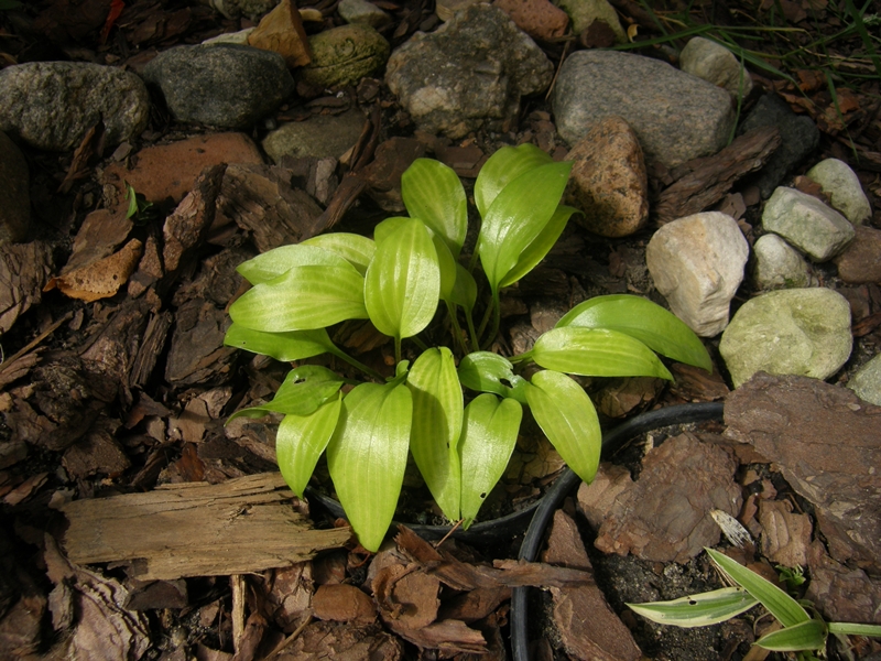 Jej kwiaty są bardzo charakterystyczne, osadzone na ulistnionych łodyżkach - wyglądają, jak zrywające się do lotu ptaki. Rośnie na półcienistym, często podlewanym stanowisku, osłonięta nieco przez większe sąsiadki. To one wzięły niemal cały impet majowych przymrozków na siebie, osłaniając tego malucha. Wszystkie hosty wokół mają straszliwe egzemy grzybowe.