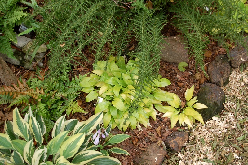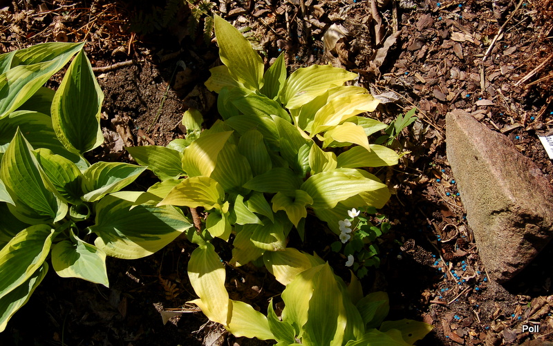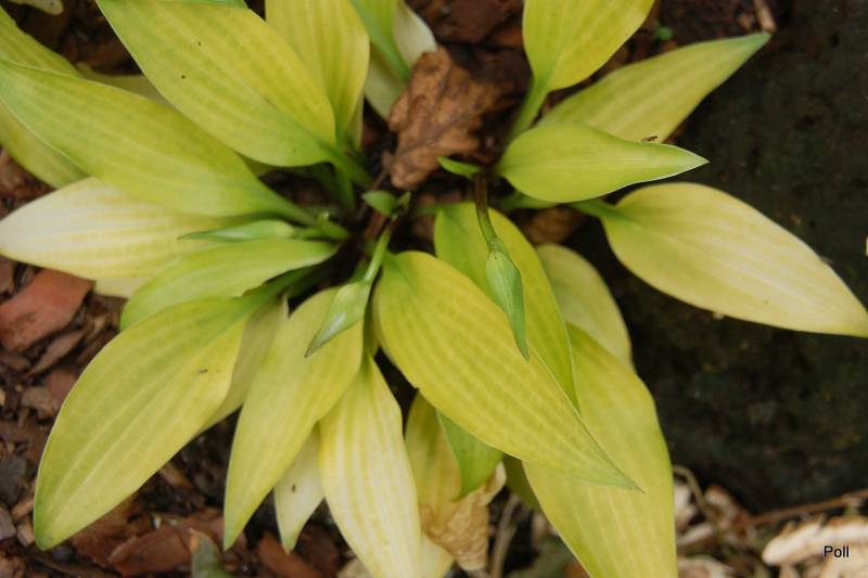Hosta Maya Tritone - 7latka, stale na tym samym, półcienistym stanowisku. Cieszę się, ze po ubiegłorocznych przemrożeniach nie ma śladów egzem grzybowych, jakie miałą w ubiegłym roku