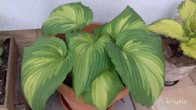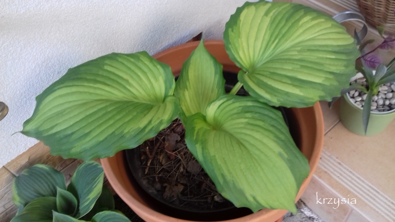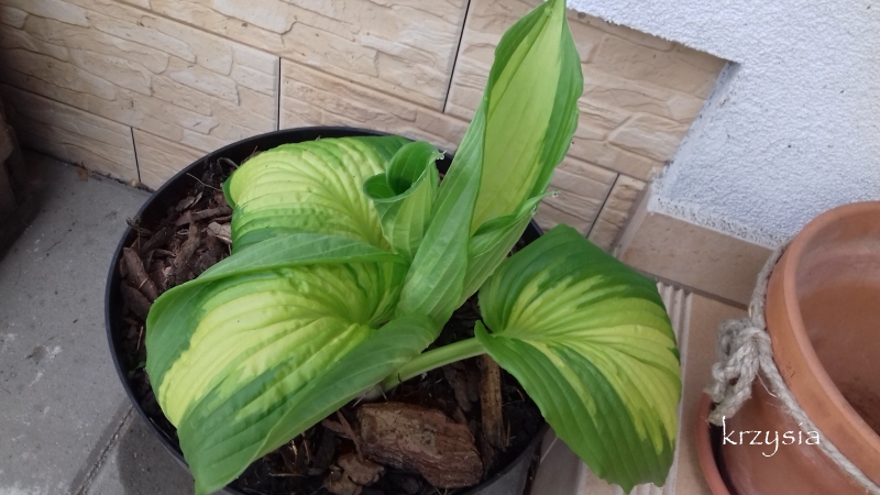 Wczoraj wyciągnęłam ją ze słonecznego zimowiska, moje hosty błyskawicznie się rozwijają , temperatury robią swoje. W tym roku wyszła już :diabelek dwoma kłami.