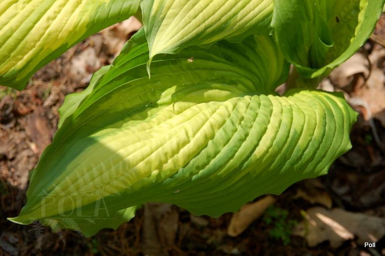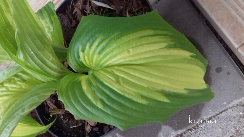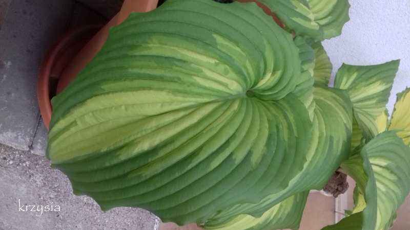 Hosta War Paint rozwija się bardzo jaskrawymi liśćmi o pieknym kształcie :slonko