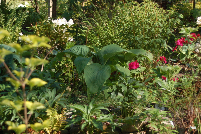 Podzielona hosta T Rex trafiła na stanowisko tuż koło Elegans. Jak to zwykle bywa po podziale, musi minąć jakiś czas, aż wróci do swoich rozmiarów.