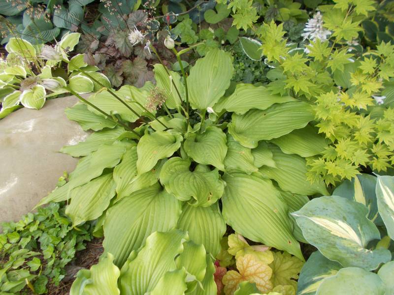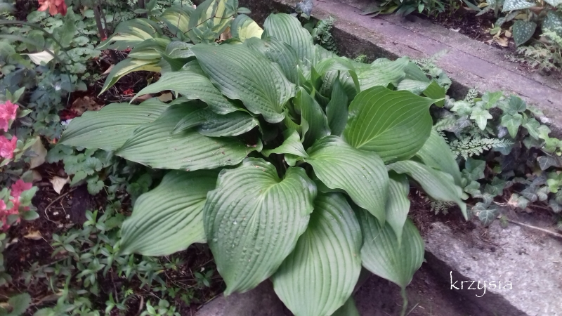 - świetna, jako tło dla innych mniejszych i bardziej kolorowych host