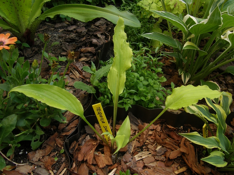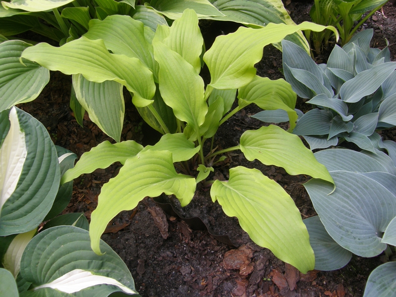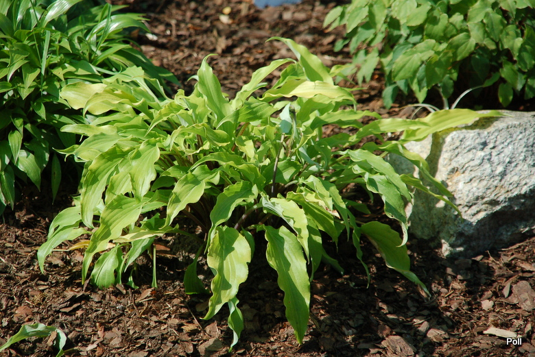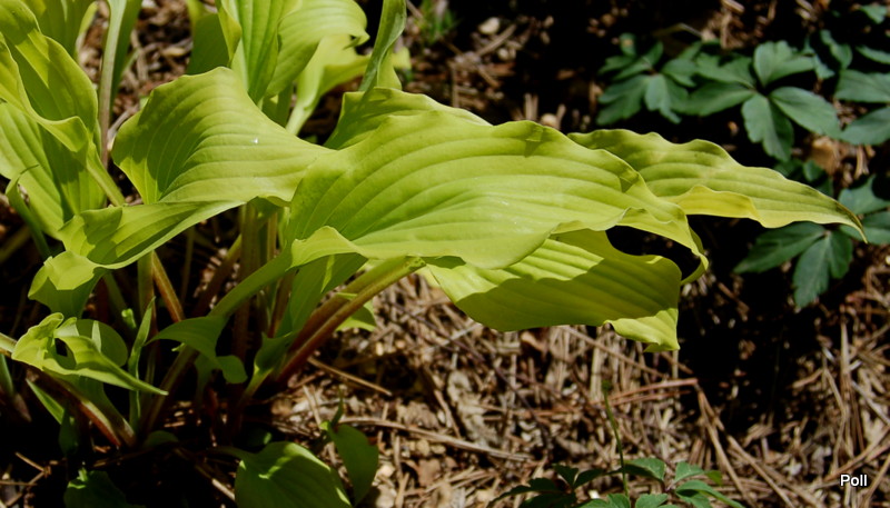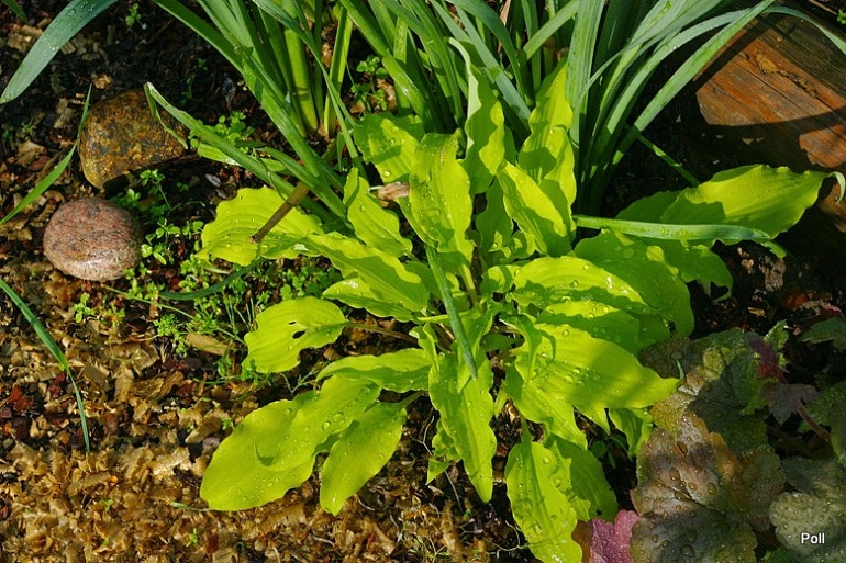 Hosta Tequila Sunrise rośnie w moim ogrodzie 5ty sezon. Za stanowisko ma półcieniste i stale wilgotne miejsce z przepuszczalną glebą. Jest to hosta dla lubiących nietuzinkowe, choć jednokolorowe rośliny. Jaskrawożółte, podłużne liście są falujące i tworzą ładne, choć nieco chaotyczne kępy. Czerwone nóżki widoczne są już w fazie kłów i nadają jej ciekawego kolorytu. Przyzwoicie się namnaża i nie miałam z nią innych problemów niż to, że lubi być podjadana przez ślimaki. Trzeba ją więc chronić, wysypując pod nogi np troszkę niebieskich granulek. Czasem, gdy ślimaków jest niewiele, wystarczy drobne, kłujące igliwie i szyszki, albo wkopane w ziemię pułapki piwne... Do kompletu polecam siewkę tej hosty, nowe intro Patricka Butaye z 2014 roku,