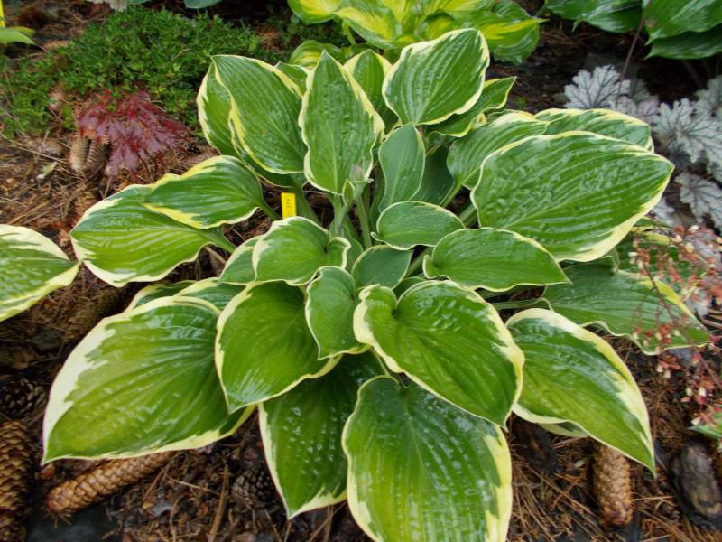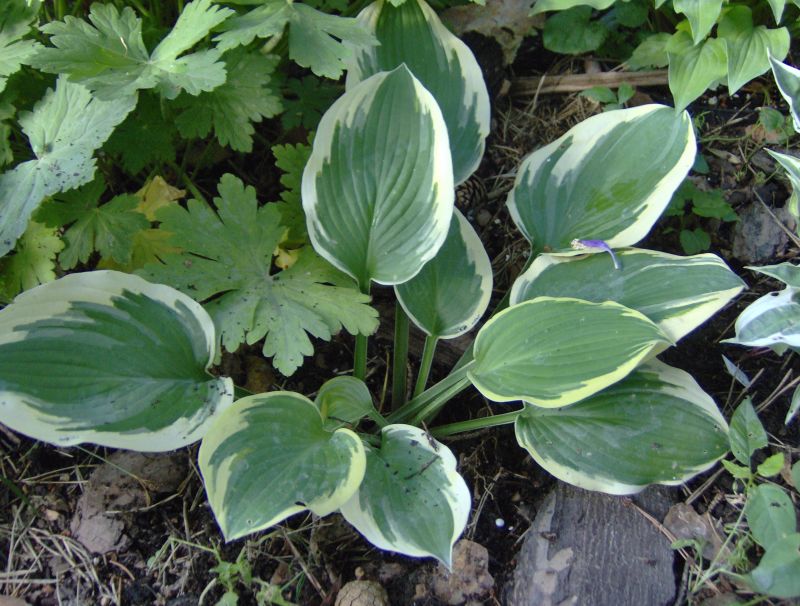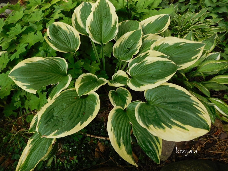 Hosta Lakeside Roy El, to 9-letnia roślina. Niby nie wyróżnia się niczym szczególnym, ale szeroki, kremowy margines pieknie współgra z niezbyt ciemnymi liśćmi a całość jest widoczna, jaka jasna plama, z daleka.