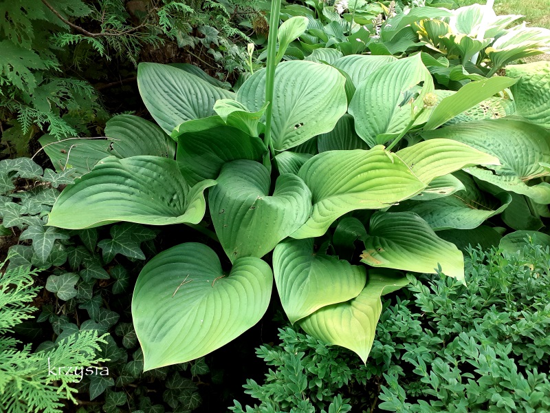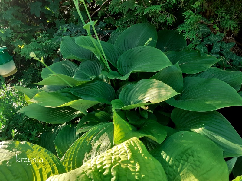 Sadzonka pochądząca z wymiany sprzed 5 lat, rośnie na stanowisku półcienistym pod starym modrzewiem, regularnie nawadniana. Na dzień dzisiejszy to zdecydowanie największa hosta w moim ogrodzie.