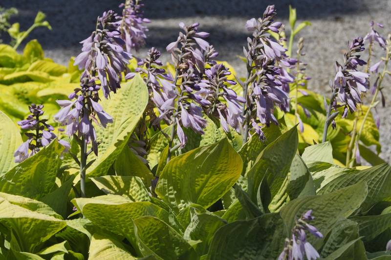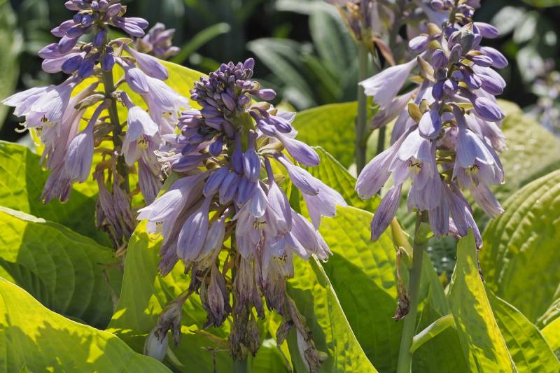Kwiaty: lawendowe, na bardzo wysokich łodyżkach, kwitną w lipcu