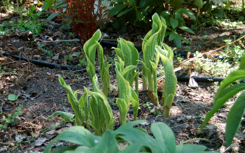 Zdjęcie majowe -hosta Paradise Bagstage powoli rozwija skrzydła