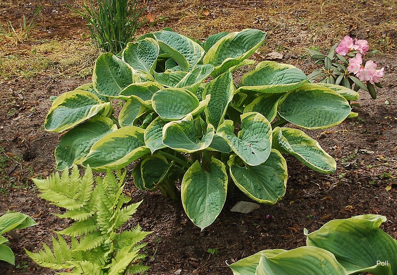 Co moge teraz o niej napisać? bardzo ciekawe wybarwienie - wiosną liście są lekko turkusowe a trzykolorowy, cieniowany margines wygląda pieknie i podkreśla ten odcień niebieskości.Powolna dość, ale warta zakupu, szczególnie dla wielbicieli dużych, mocarnych host.