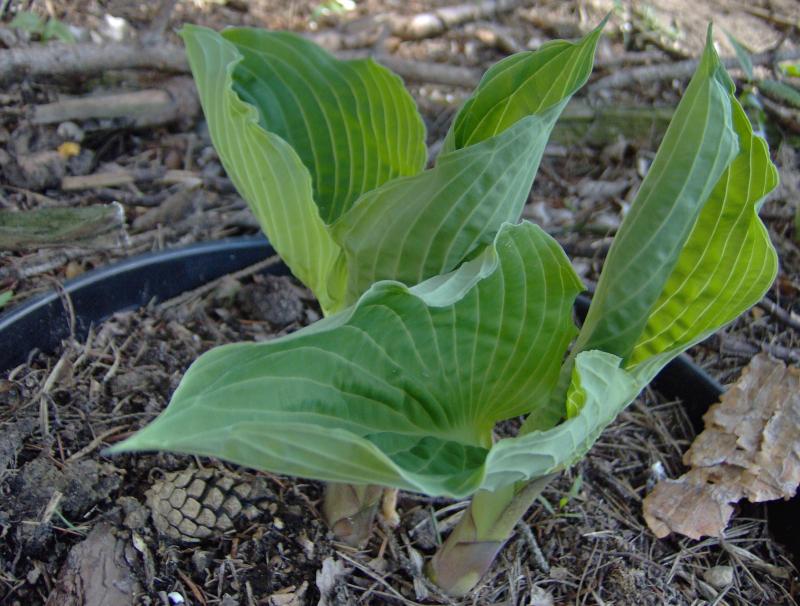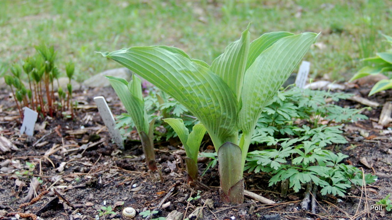 Jesienią, wraz z innymi hostami Olgi Petryszyn trafiła na nowe, żyzne stanowisko, gdzie nie będzie rosła w ścisku. Razem z nią przeniosło się trochę zawilców i konwalijek dwulistnych.