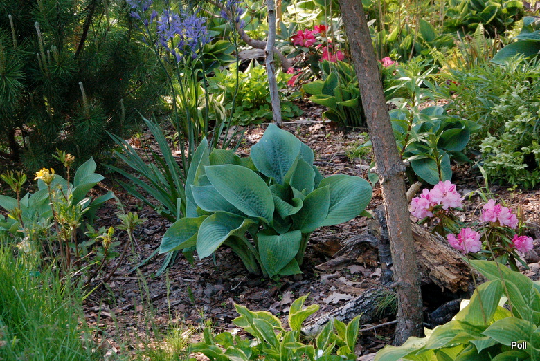 6 sezon w ogrodzie, rośnie w półcieniu starych modrzewi, regularnie nawadniana.
