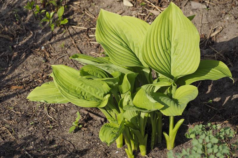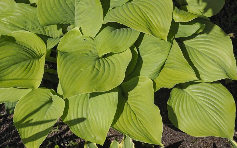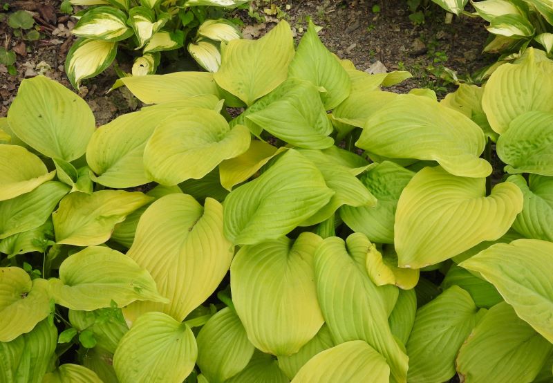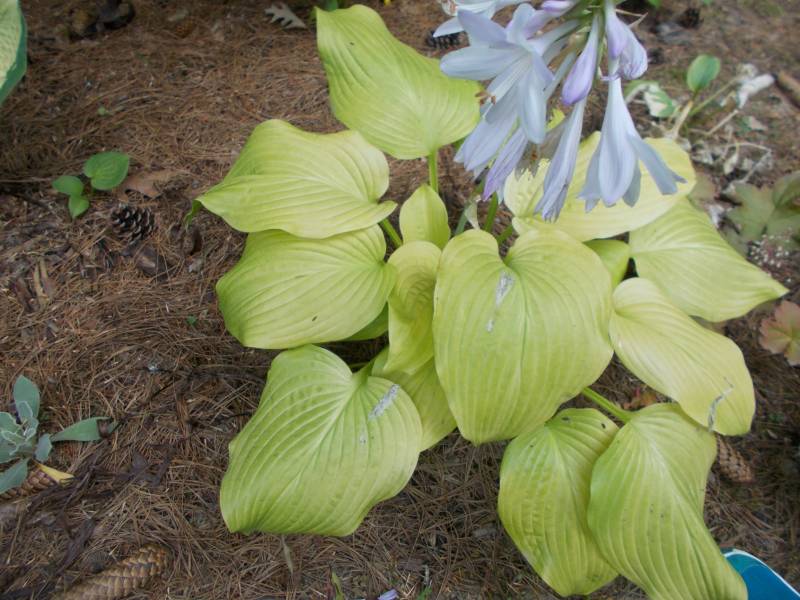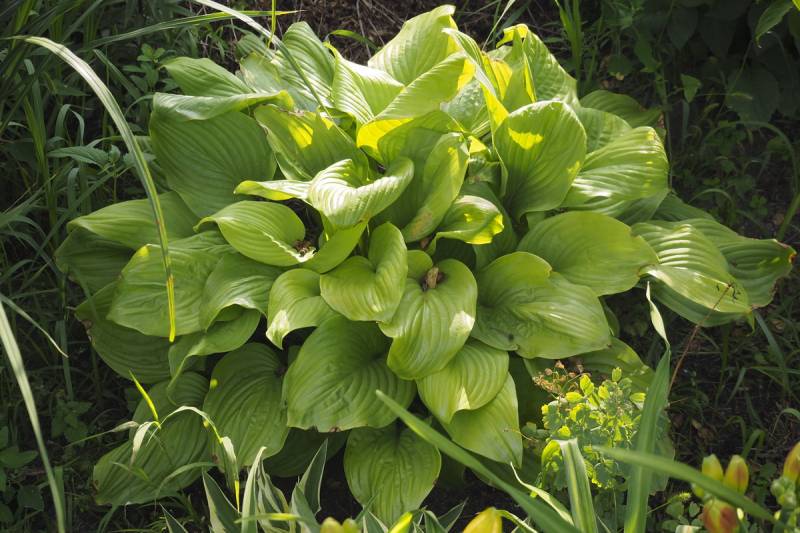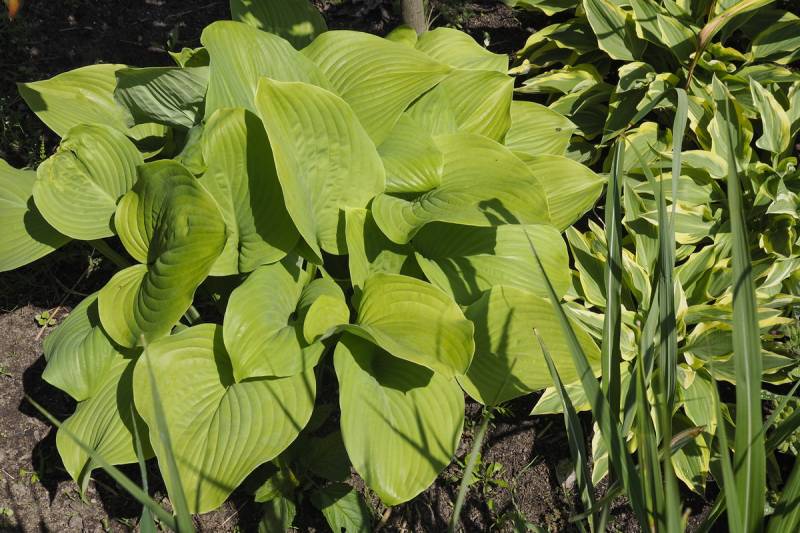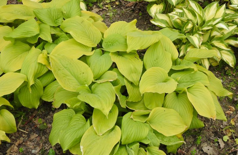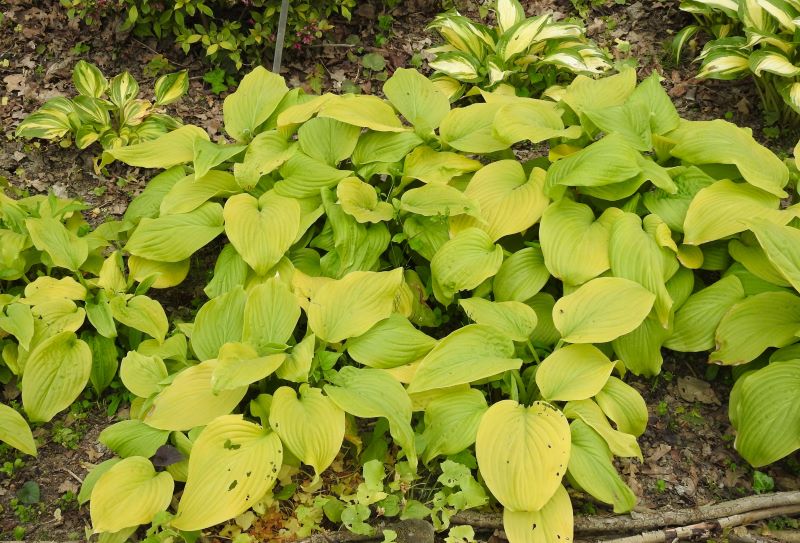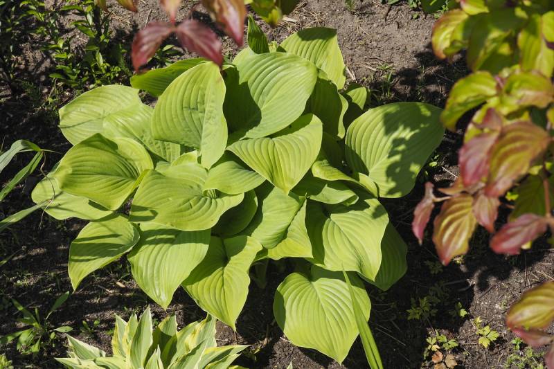 Hosta Tortilla Chip rośnie u mnie pod dereniem Satomi, słońca ma tam całkiem sporo. Latem liście robią się żółtawe, ale tak delikatnie ... i to mnie trochę zastanawia
