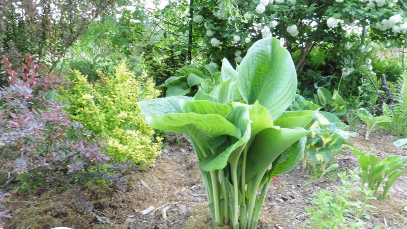 Rośnie na zasobnym, ale nieco suchym stanowisku, gdzie została przesadzona 2 lata temu, bo na poprzednie zrobiła się za duża. Faktycznie, nieco odchorowała w ubiegłym roku przesadzenie, ale w sezonie 2016 już nieco wróciła do normy. Rośnie bardzo powoli i równie wolno nabiera cech mocarnej hosty.