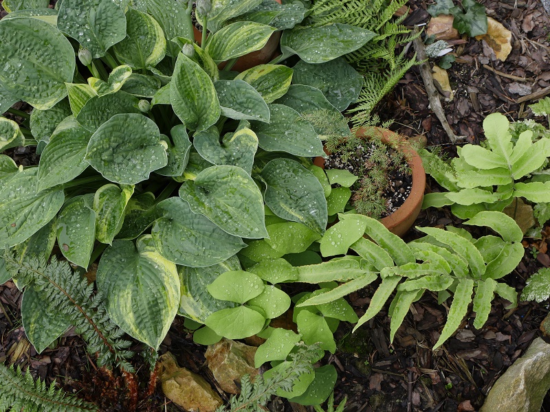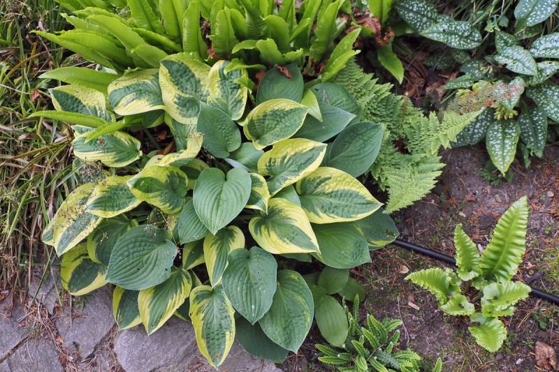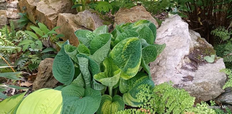 Późną jesienią moja 'Miss Poland' została uszczuplona... ale tak na chybił trafił, bo liście już zżółknięte były... : oddzielone 3 części wyszły wiosną w formie zielonej z mazajem w zaniku (pojawił się dosłownie na 1 liściu) oraz w formie żółtoobrzeżonej... i tak mi się zdaje, że w sprzyjającej porze muszę dokonać kolejnej redukcji kępy, bo liście jednobarwne zaczynają w niej dominować nad prawidłowo wybarwionymi a takie odejścia od wzorca to prosta droga do utraty odmianowej hosty