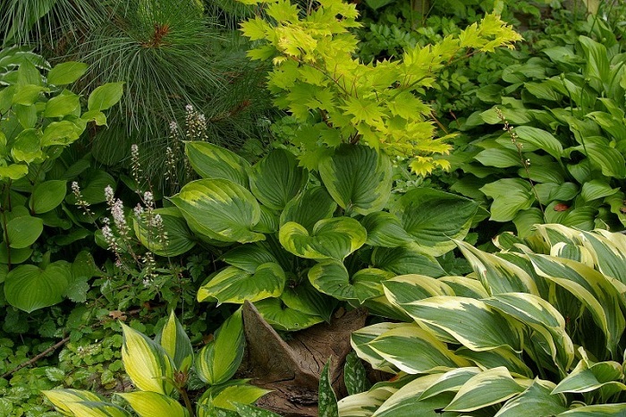 - ciekawa, choć niezbyt popularna hosta;zachwyca kolorami od wiosny do końca sezonu