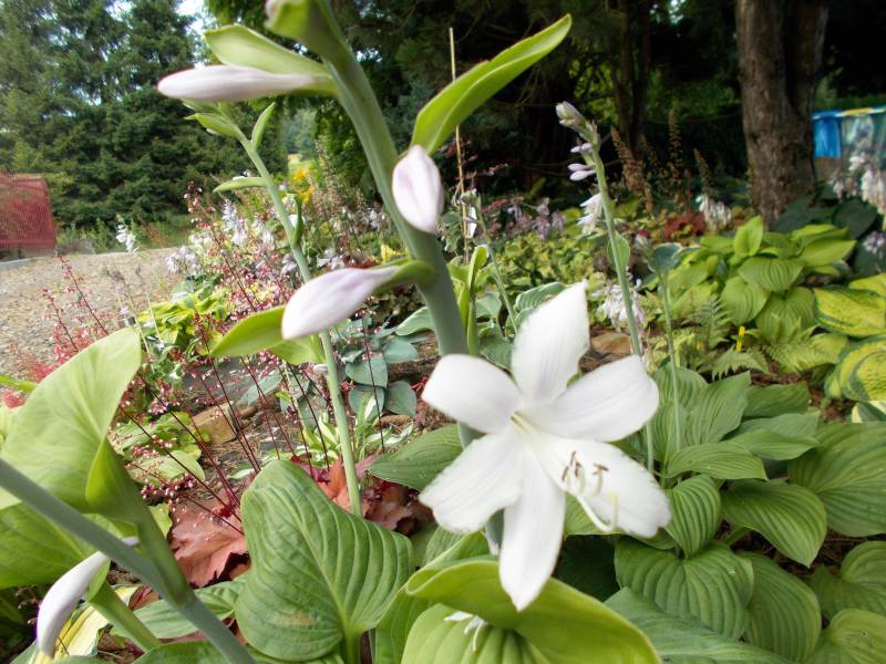 Kwiaty: białe, duże, pachnące; okres kwitnienia rozpoczyna się w sierpniu