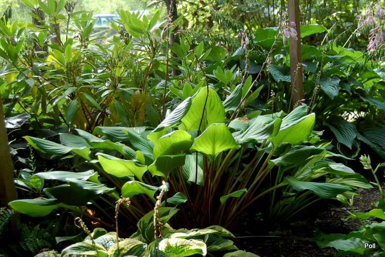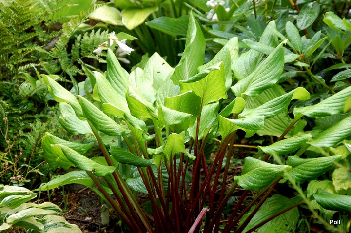 Wizualnie bardzo ciekawa hosta , do tego ładnie przyrasta i nieźle się prezentuje do końca sezonu. Liście wzniesione, powywijane tak, iż dobrze widać bordowe łodygi. Niestety, trzeba ją chronić przed zakusami ślimakami!