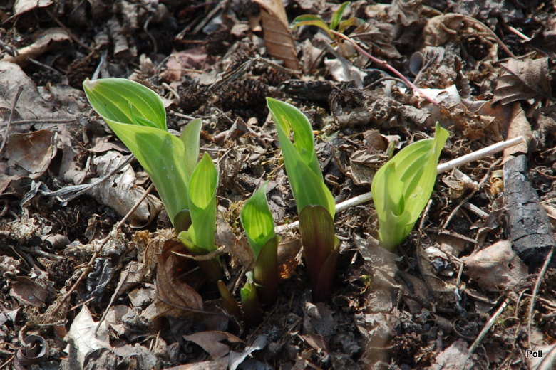Rozmiar: M wysokość 40-45cm Liście: zielone , skręcające się ,o lekko podwiniętych do wewnątrz brzegach osadzone na ciemnobordowych lodyżkach; pokrój wyprostowany Kwiaty:lawendowe, w pąku purpurowe (poł.VIII) Stanowisko: od półcienia