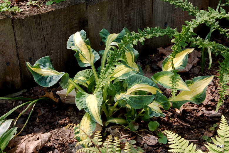 W pełni hostowego sezonu stwierdzam, że jest to najbardziej zwariowana hosta w moim ogrodzie Zwariowana, w pozytywnym tego słowa znaczeniu. Liście... każdy nadal inny. Inaczej układają się kolory. Nie ma tu sztampowego w opisie marginesu, czy wypełnienia jakimś konkretnym kolorem środka. Wielkość liści jakby z kilku różnych host. Do tego część liści jest ładnie układająca się, a część radośnie powykręcana w różnych kierunkach. Jeszcze nie osiągnęła rozmiaru M. To taki rozczochrany, radosny maluch