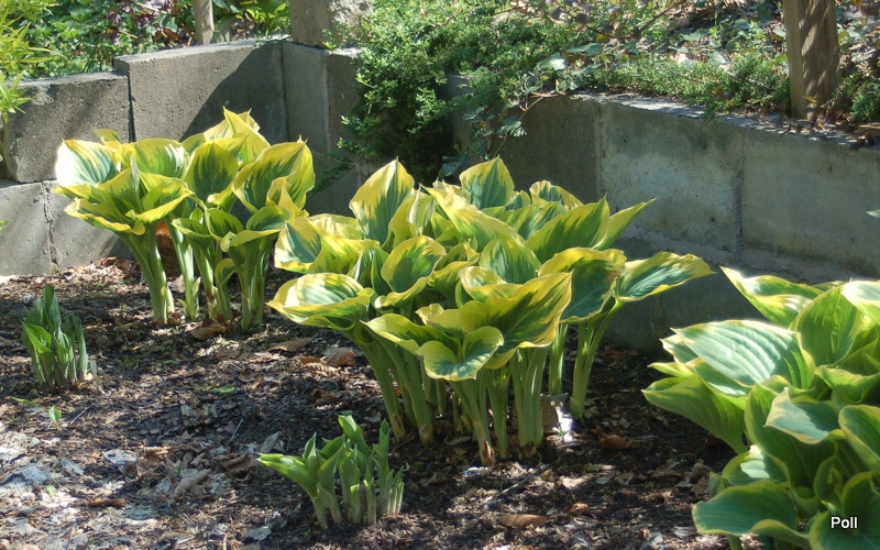Rośnie tam wśród krewniaczek pochodzących od hosty Sagae- Liberty (po lewej) i Super Sagae (po prawej)