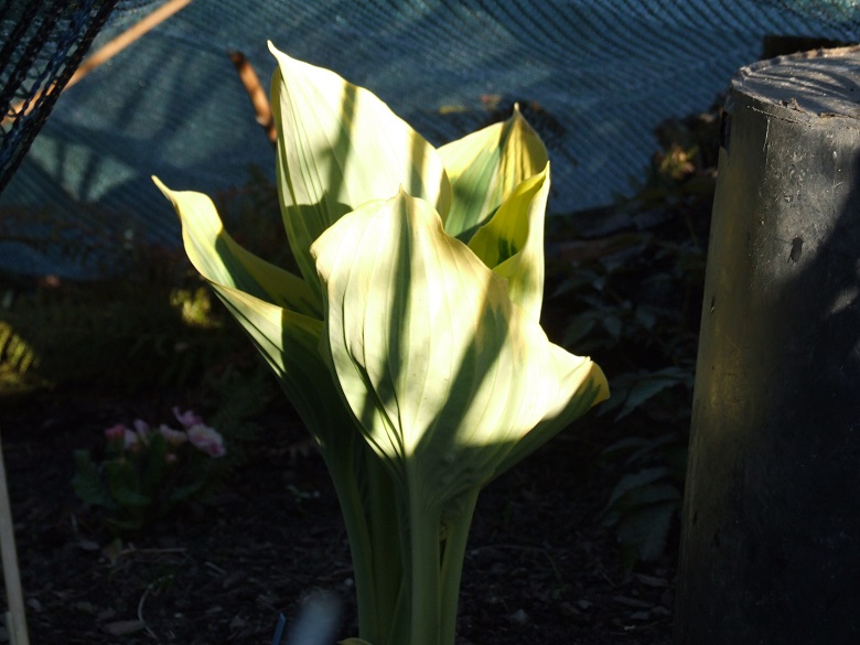 Kilka dni temu postanowiłam, że muszę zdobyć inny egzemplarz , najlepiej z podziału, od starszej hosty. Wysadzę go na dzikiej części działki, gdzie przymrozki rzadko zaglądają a rośliny wschodzą później.