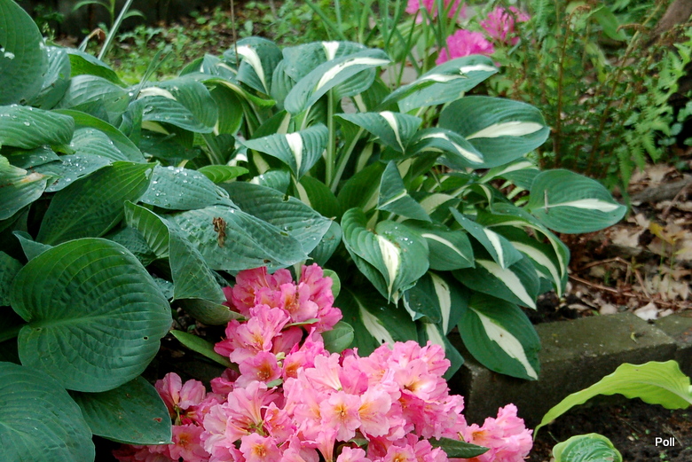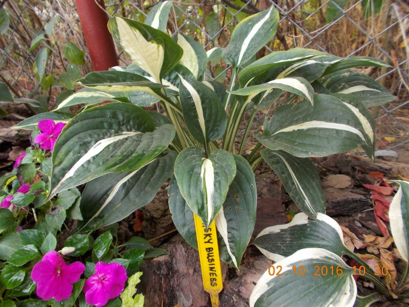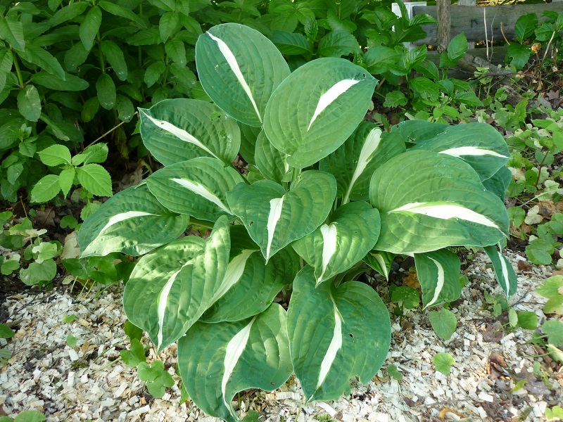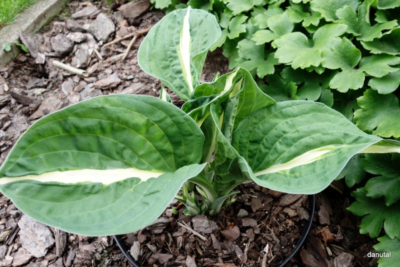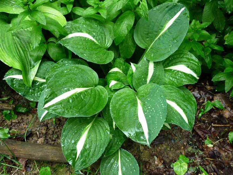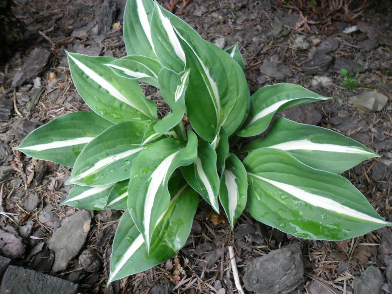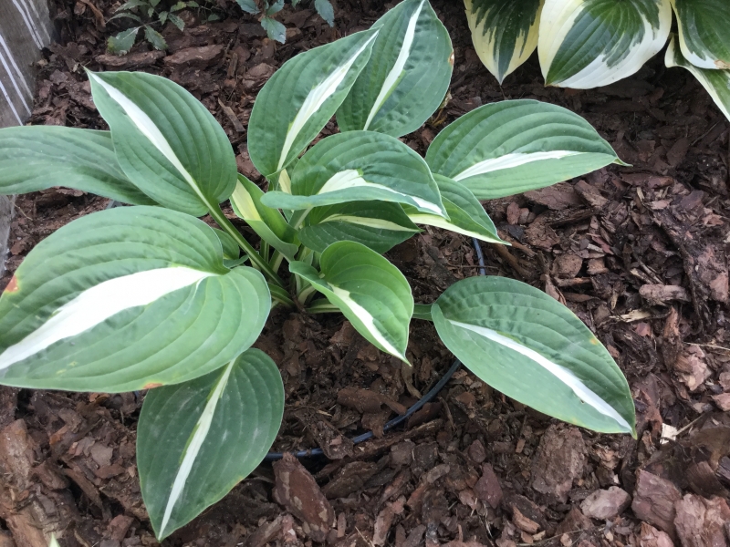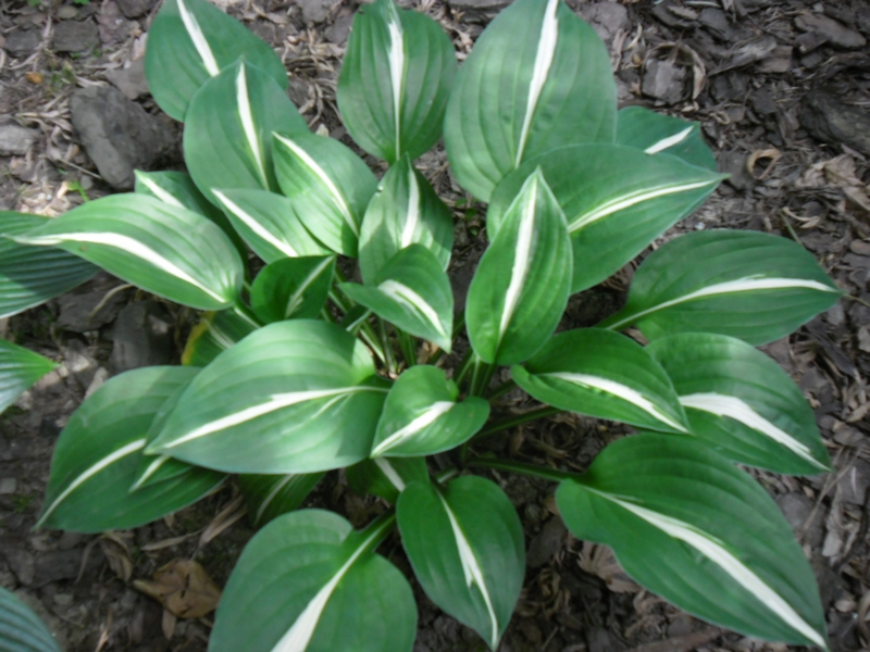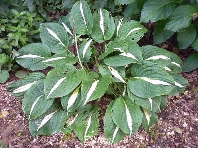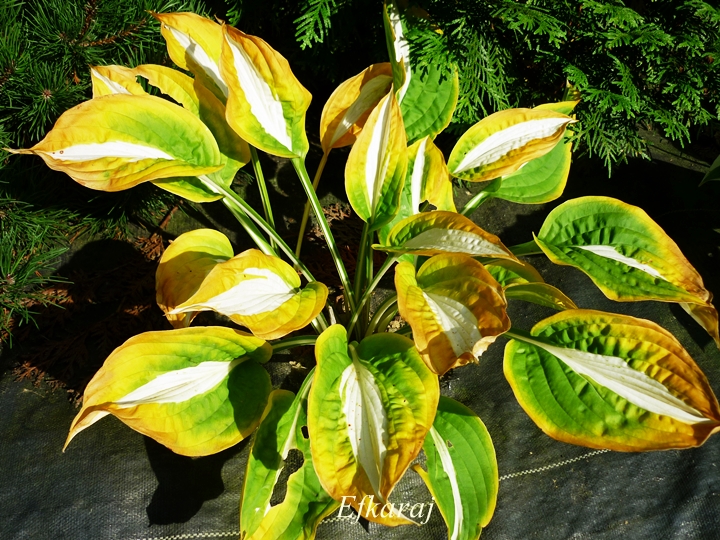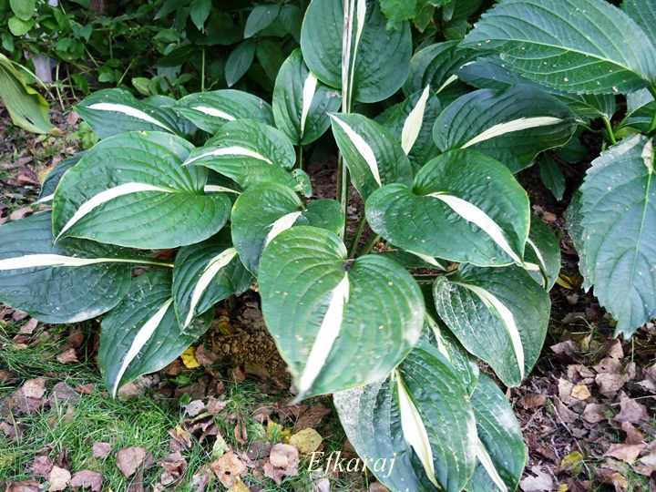 Liście: biały środek otoczony jest szerokim ciemno zielonym marginesem. Utrzymuje te kolory przez cały sezon.