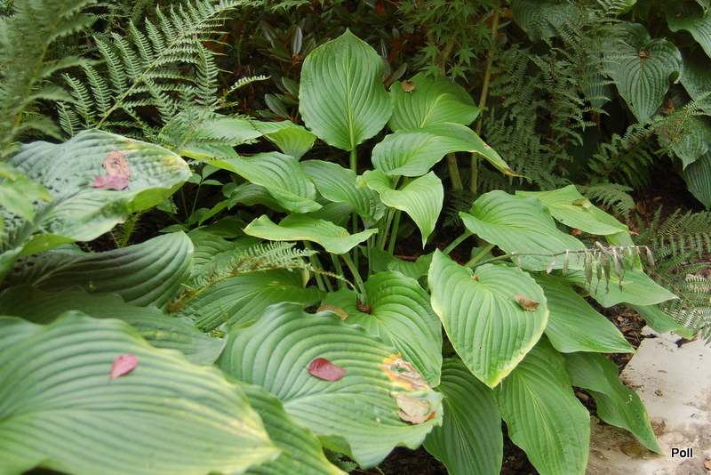 Wysokość: do 110 cm Liście: zielone, zwieszające się z wyraźnie widocznymi nerwami , spód przypudrowany Kwiaty: blado lawendowe Wzrost: średni Stanowisk: cień , półcień