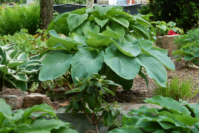 - wielka, spokojna hosta, doskonała jako soliter i tło dla innych, bardziej kolorowych hostowych średniaków