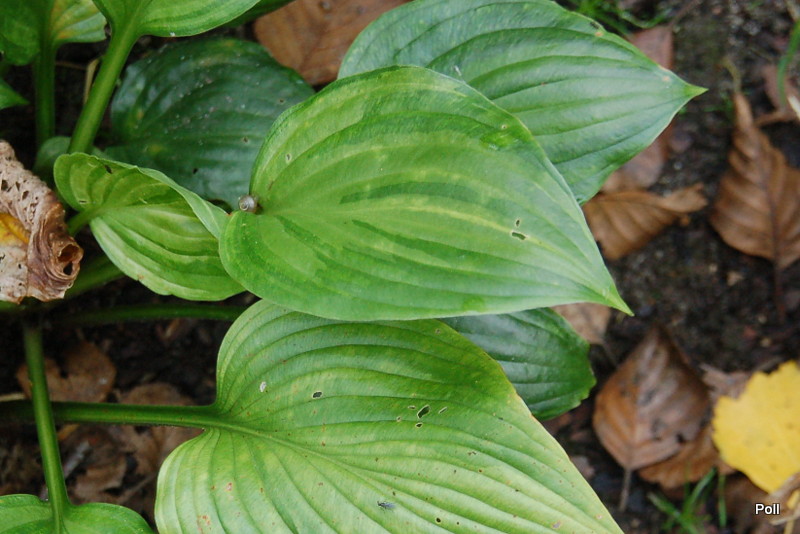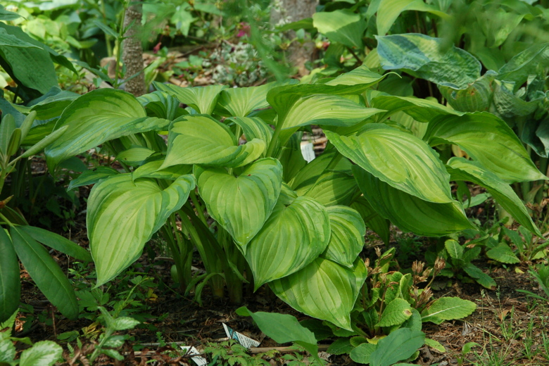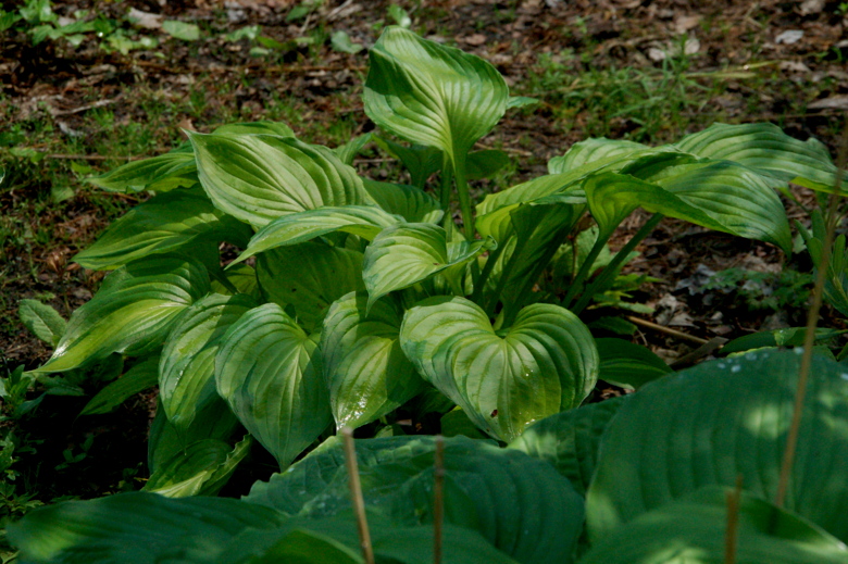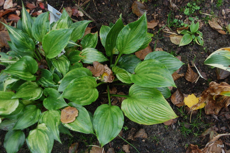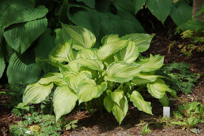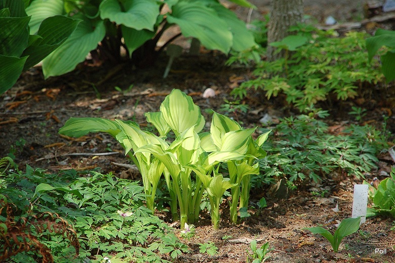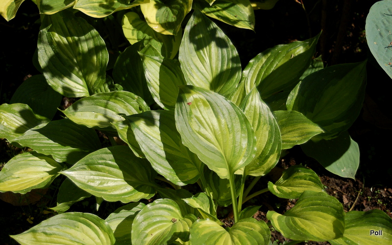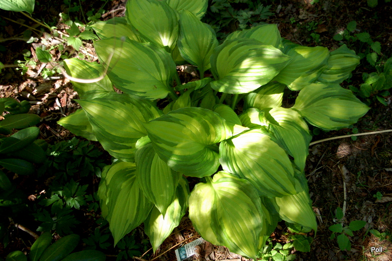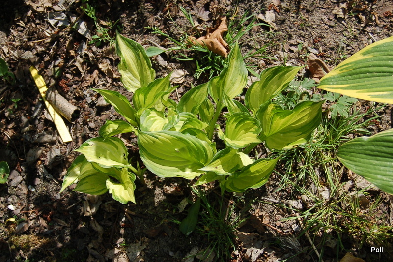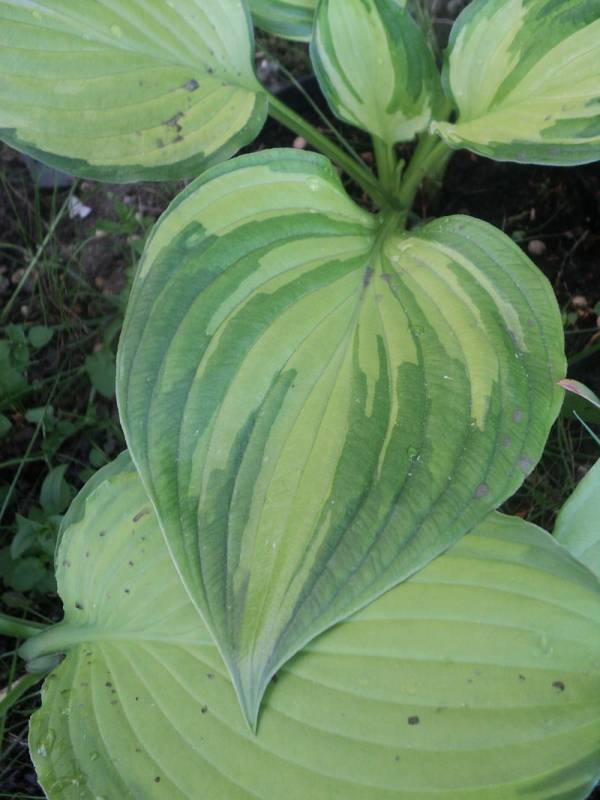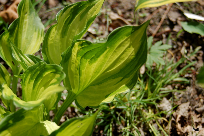 ventricosa Aureomaculata. Wiosną jest bardzo jaskrawa- mocno żółte centrum otoczone jest żywozielonym marginesem. Powierzchnia liścia lśni, odbijając promienie słoneczne, co jeszcze potęguje wrażenie jaskrawości. Wraz z upływem sezonu liście ciemnieją, stają się coraz bardziej zielone. Bardzo ciekawa hosta, ale chyba głownie dla ogrodów kolekcjonerskich