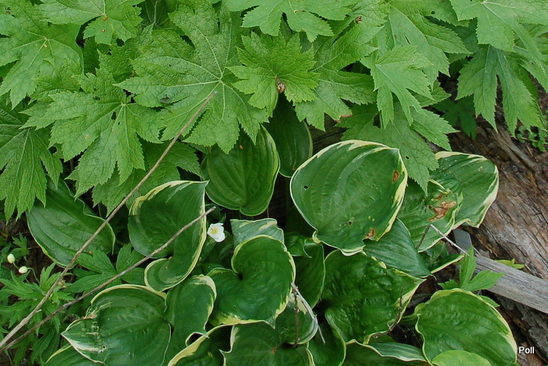 W tym roku, jak większość moich host, ucierpiała od majowych przymrozków, więc omijałam ja aparatem. Załapywała się na zdjęcia tylko, gdy fotografowałam Glaucidium palmatum. Dostała oprysk pw grzybowy, ale do końca sezonu nie odzyskała urody.