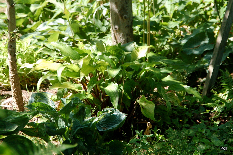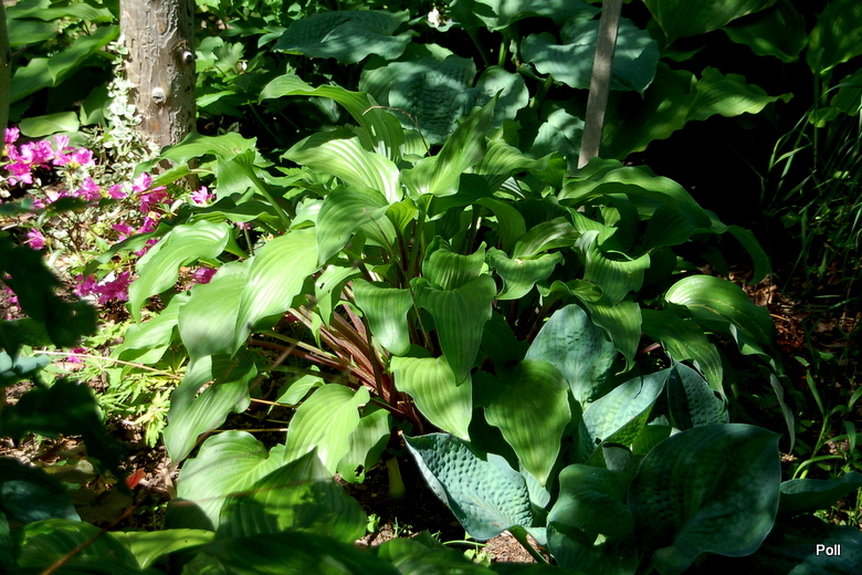Ta hosta, gdy ma stanowisko z dostępem do lekkich promieni słonecznych, bardzo ciekawie się wybarwia: jej liście stają się jakby cieniowane...Kobiety mają też inne określenie: ombre