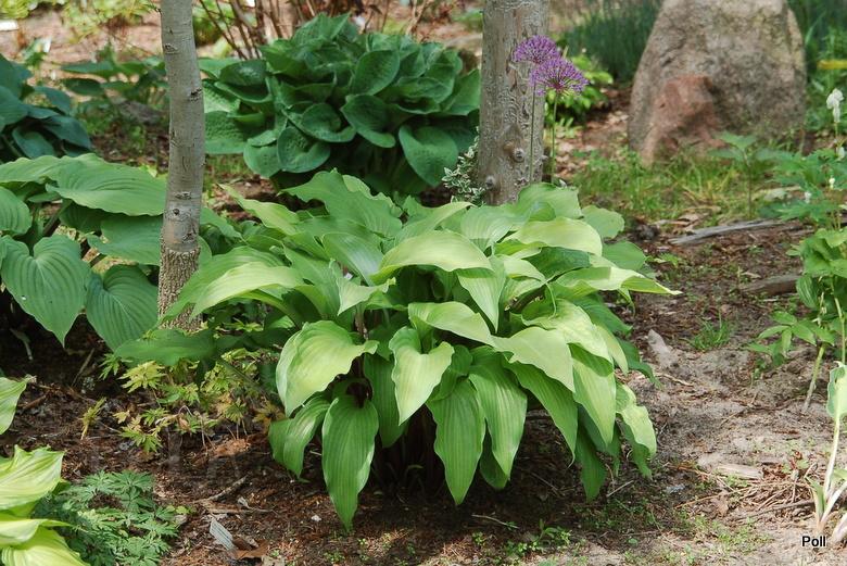Hosta Funky Monkey rozpoczyna 5 sezon w moim ogrodzie- stale na jednym stanowisku. Rośnie w wilgotnej glebie, na dość cienistym miejscu. Wiosną jej liście sa nieco ciemniejsze, dopiero w trakcie sezonu lekko się wyżółcą.