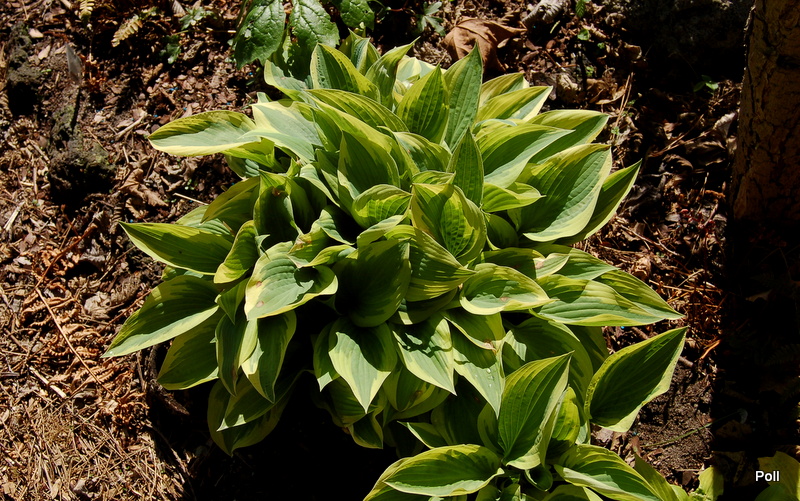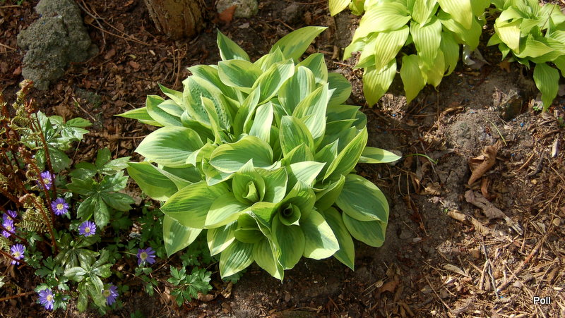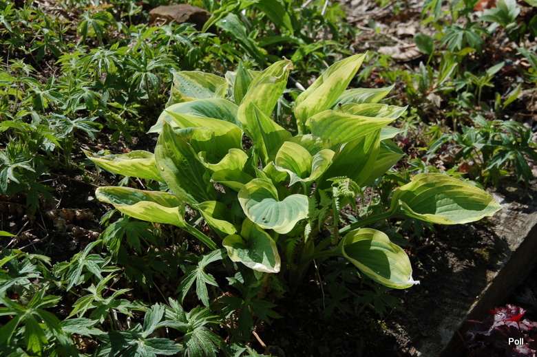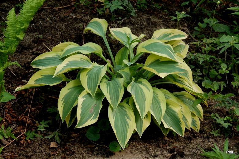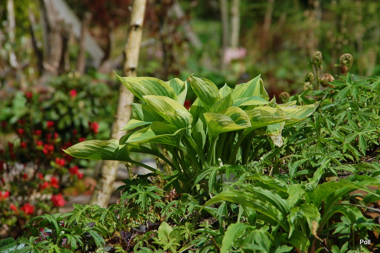 Hosta Angelique od początku uprawy na tym samym stanowisku - półcienistym, dość spadzistym stoku dryopterisowej górki.
