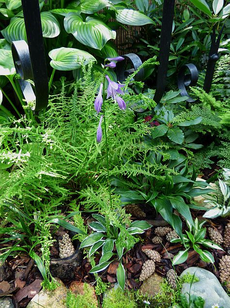 Widok z góry... w objęciach wietlicy samiczej 'Dre's Dagger' oraz host 'Tortifrons' i 'Corkscrew'