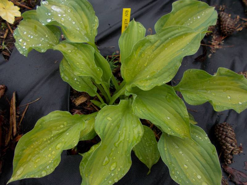Hosta Roy Klehm rośnie u mnie od 2014roku, kupiona została u Fransena, jako1-kłowa sadzonka z in vitro. Wyrosła na krępą, mocną hostę o wyraźnych barwach. Choć rośnie na zimnym Sławojkowie, nigdy mocniej nie przemarzła - nie dam sobie głowy uciąć,ale być może później startuje. Rośnie na wilgotnym, zasobnym stanowisku.