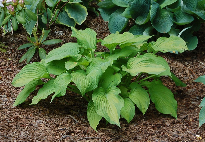 Tetraploidalny sport hosty 'Summer Serenade' ( Hans Hansen i Shady Oaks Nursery z Minnesoty , 2007r.)