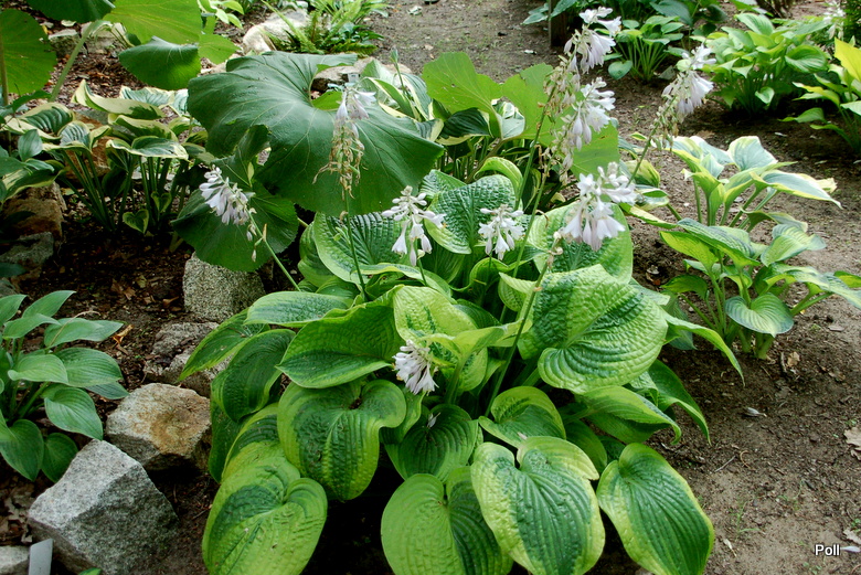 - mocarna, duża hosta, tworząca szerokie, widowiskowe kępy