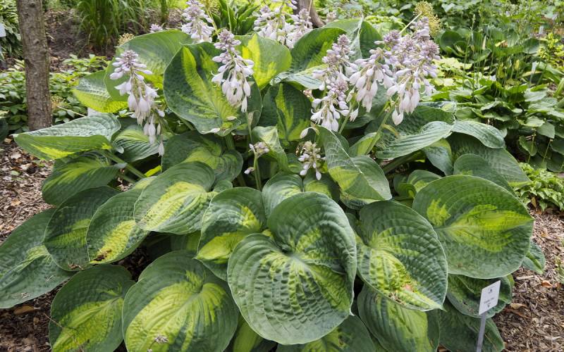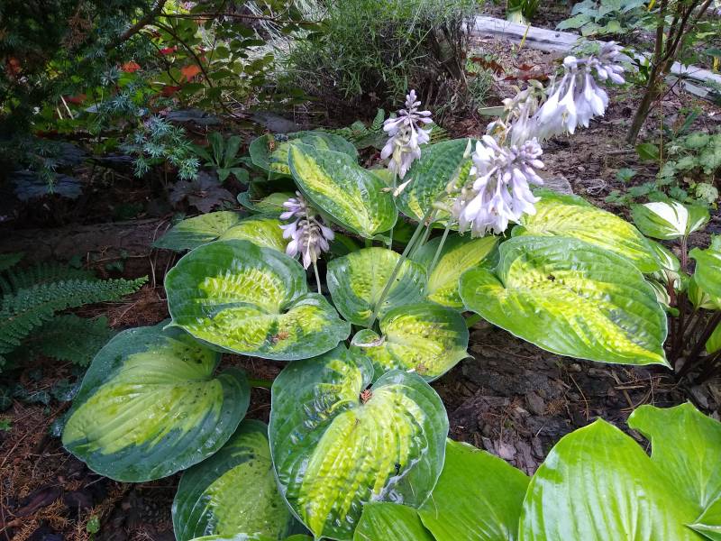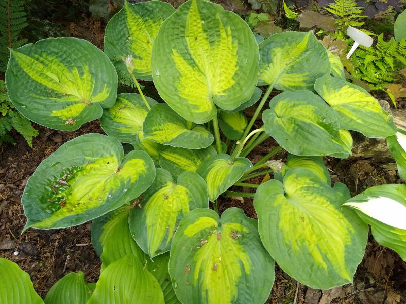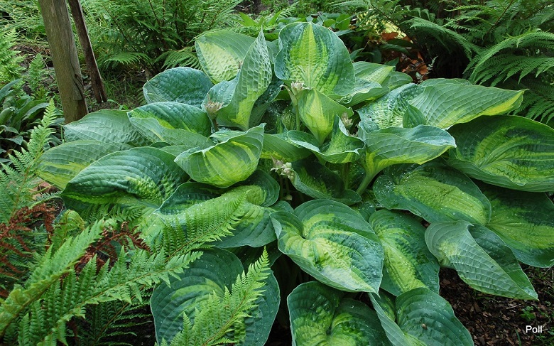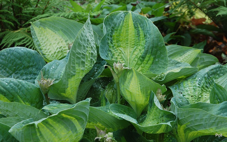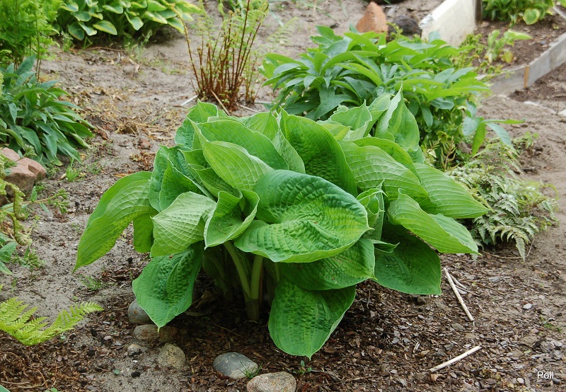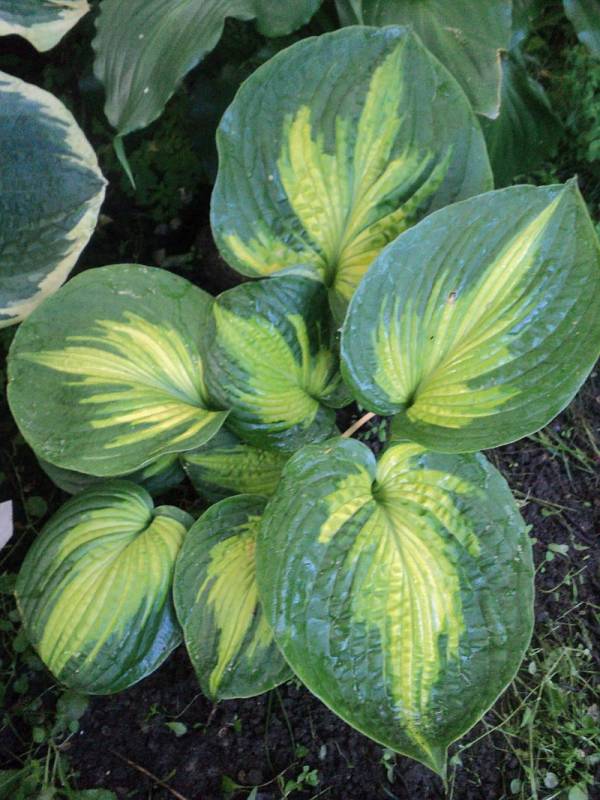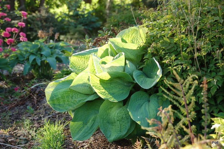 - hosta zaliczana do odmian o burchlastych (gufrowanych) liściach, których rozmiar wynosi około 35 x 25 cm