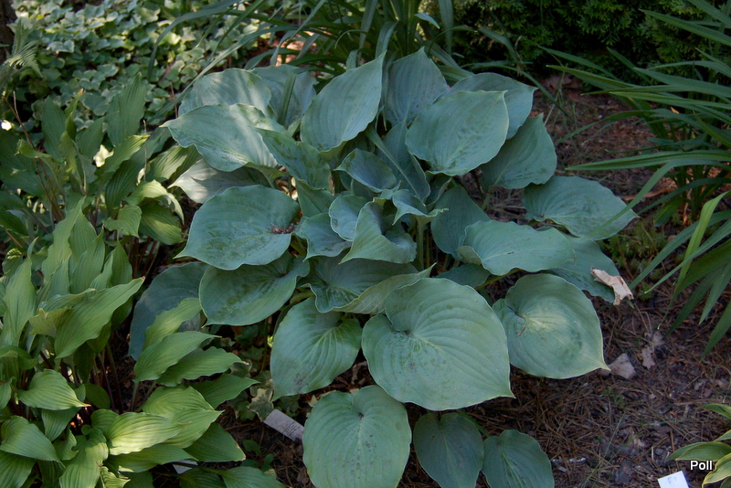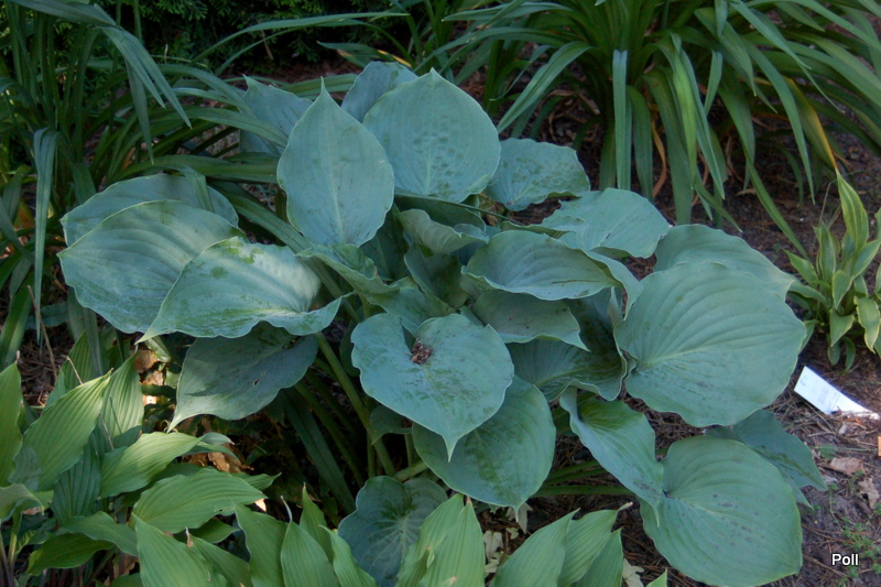 Rozmiar: M/L wysokość 55-65cm Liście: grube, błyszczące, wiosną intensywnie niebieskie, latem zielenieją. Brzeg delikatnie pofalowany, blaszka liściowa z wyraźnym żebrowaniem. Kwiaty: białe, liliowo paskowane, bardzo pachnące, pojawiają się na przełomie lipca i sierpnia. Zalecane stanowisko: półcień.