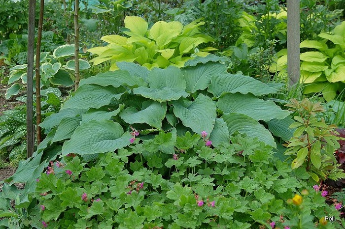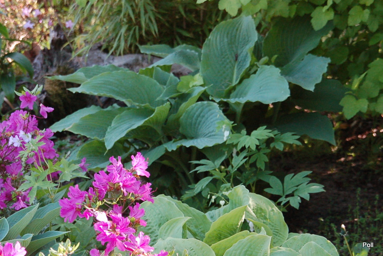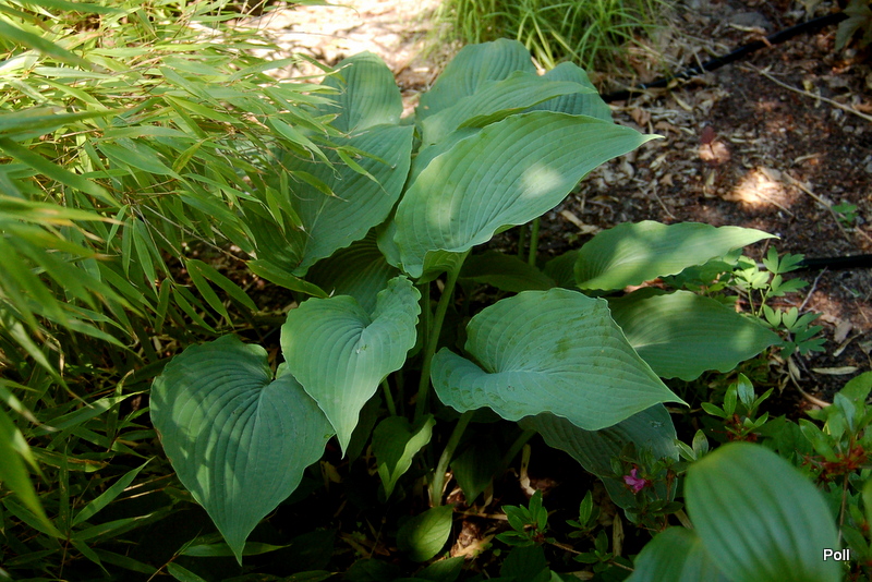 Mesa Fringe, to stara odmiana, ale jesli jesteście miłośnikami takich jednokolorowych olbrzymów, to jest to hosta must have! Wielkie liście o wyraźnym unerwieniu widoczne są z daleka, choć ich kolor jest zgaszony, mało jaskrawy. U mnie w ogrodzie rośnie od 2009 roku a przybyła do mnie z Belgii, jako nieduża sadzonka. Nie sprawiała mi większych kłopotów (prócz tego, ze wiecej musiałam lać pod nią wody) do czasu, gdy wiosną 2018 postanowiłam ją przenieśc na nowe stanowisko. Miejsce okazało się nieodpowienie - zbyt suche, choć urodzajne. W tym roku powędruje na dno stawu.