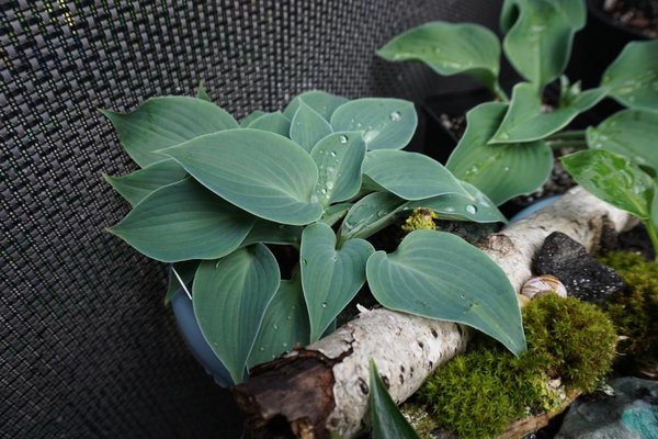 Rozmiar S wedle danych rejestracyjnych osiąga jedynie 15 cm wysokości przy 40 cm szerokości Liście: niebiesko zielone, sercowate (około 9 x 7 cm), lekko pofalowane, dobrej substancji Kwiaty: bladolawendowe, rurkowate (VII) Zalecane stanowisko: półcień/cień